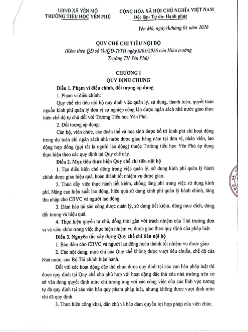 Quyết định về việc xây dựng quy chế chi tiêu nội bộ năm 2026